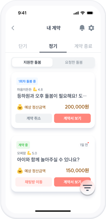 이용권 없이 원하는 시터님을 찾아 자유롭게 계약할 수 있어요